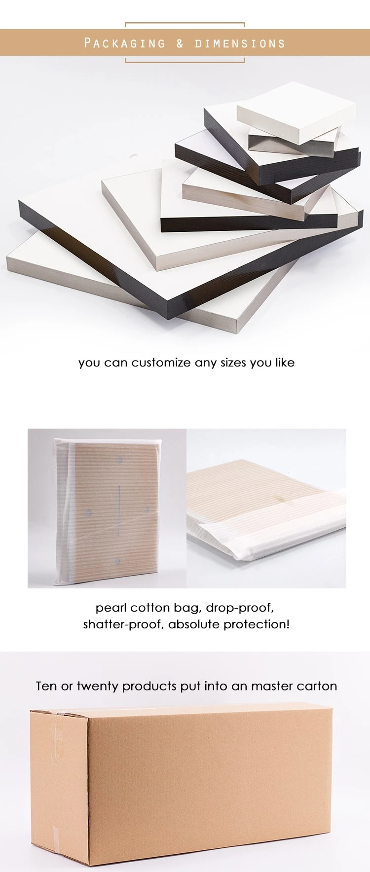 Product NameMingyu Innovative light foam photo frameMaterialMDF+XPS+PVCCountry of originHuizhou Guangdong ChinaSize5×7/6×8/8×10/11×14/12×12/12×18/16×20/20×30inchThickness0.5"/0.75"/1"/1.25"/1.5"PackagePE bag / EPE bag per pieces, then 10 pieces in one